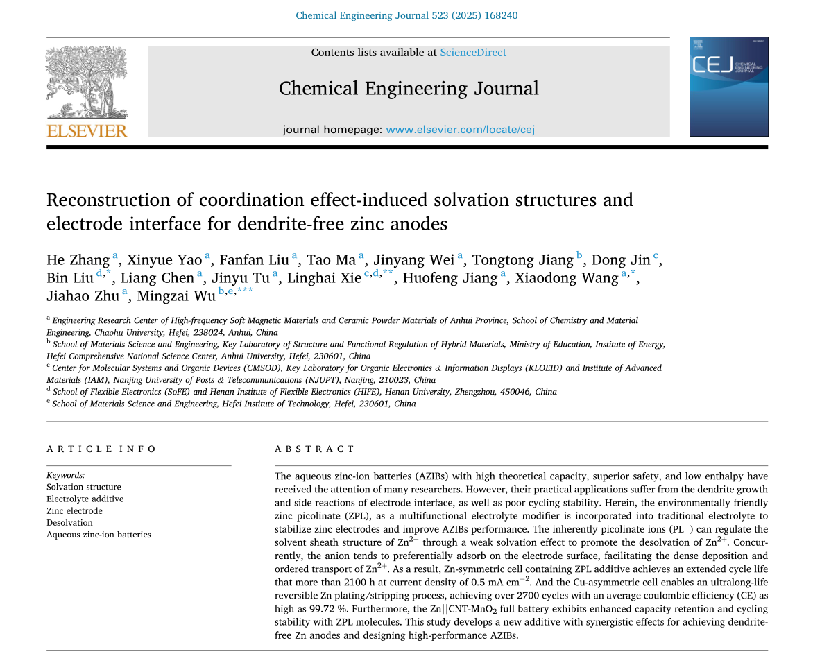 近日,巢湖學院化學與材料工程學院新能源材料與器件科研創新團隊張賀博士在水...